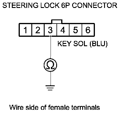 10. Check for continuity between steering lock 6P connector terminal No. 3 and body ground.
