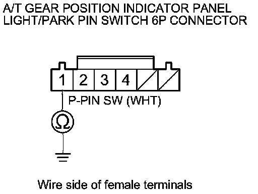 16. Check for continuity between A/T gear position indicator panel light/park pin switch 6P connector terminal No. 1 and body ground.