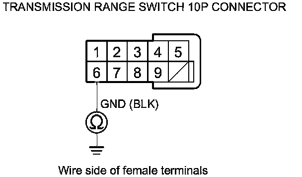 22. Check for continuity between transmission range switch 10P connector terminal No. 6 and body ground.