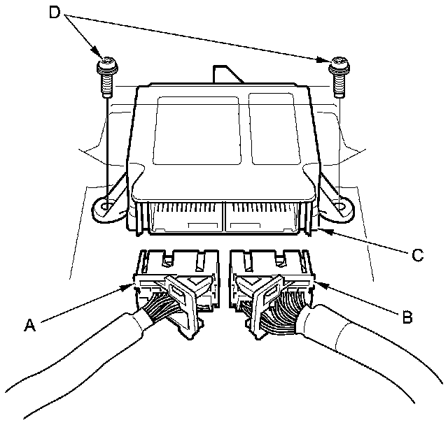 6. Disconnect SRS unit connectors A (39P) and B (39P) from the SRS unit (C).