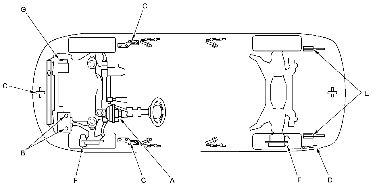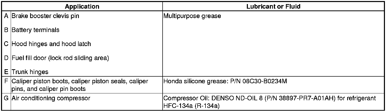 Lubricate the following areas using the recommended lubricants and