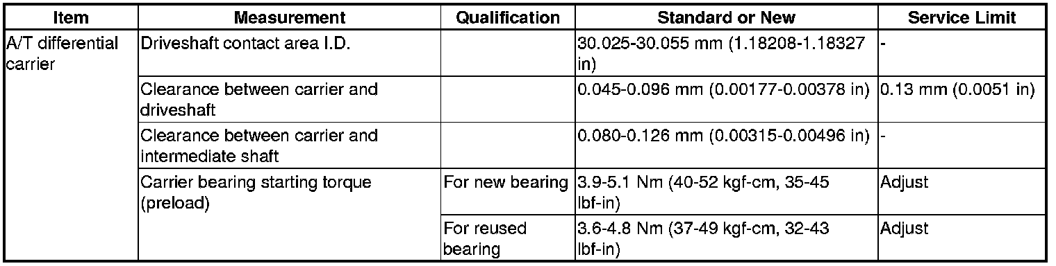 A/T Differential Carrier Specification(s)