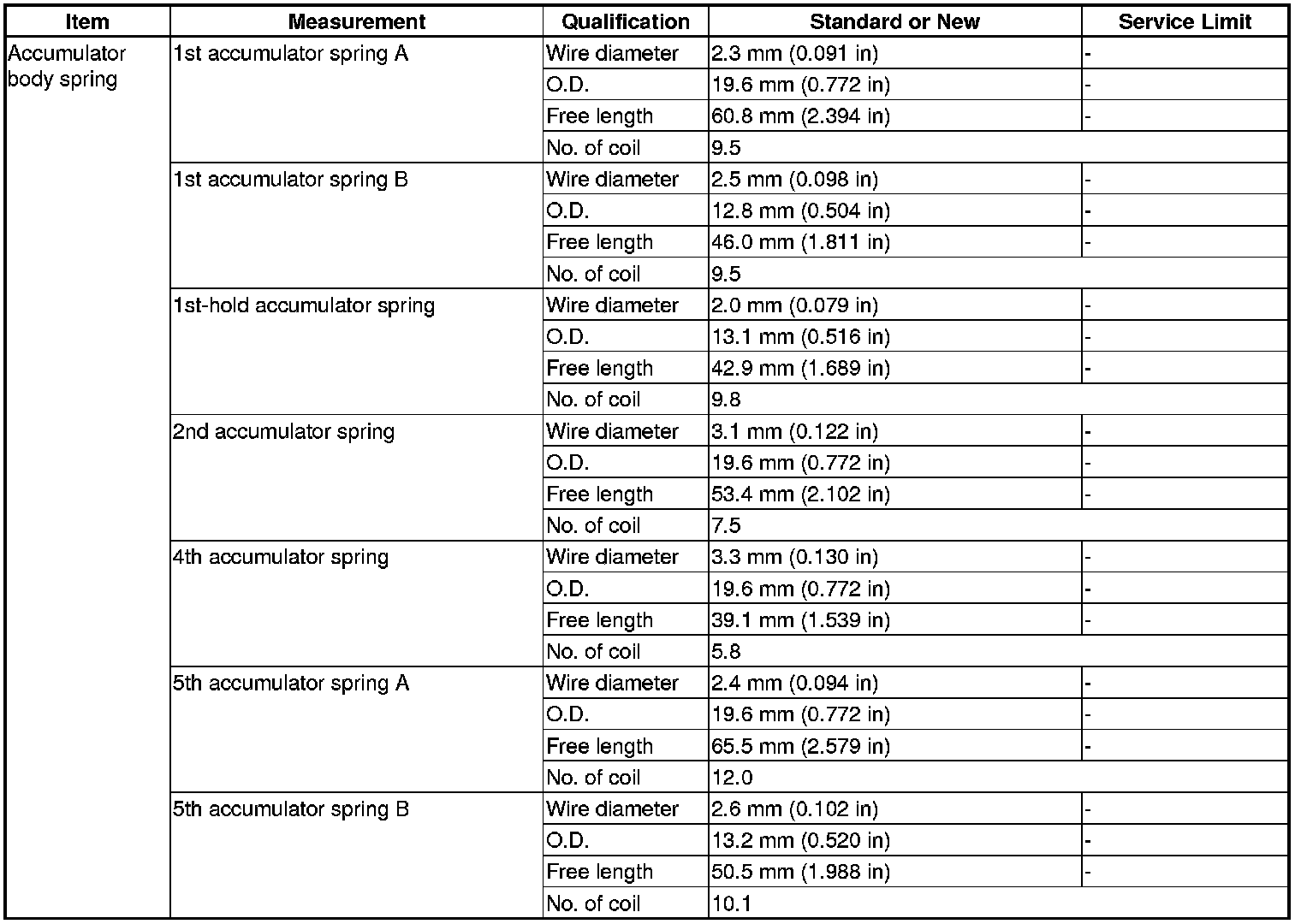 Accumulator Body Spring Specification(s)