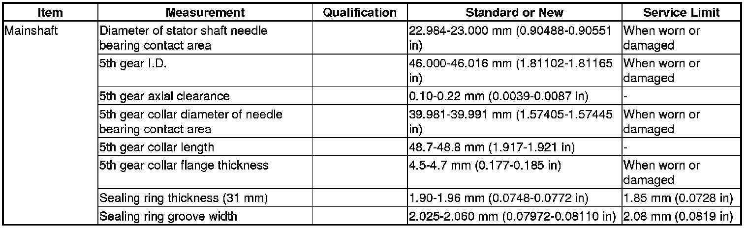 Mainshaft Specification(s)
