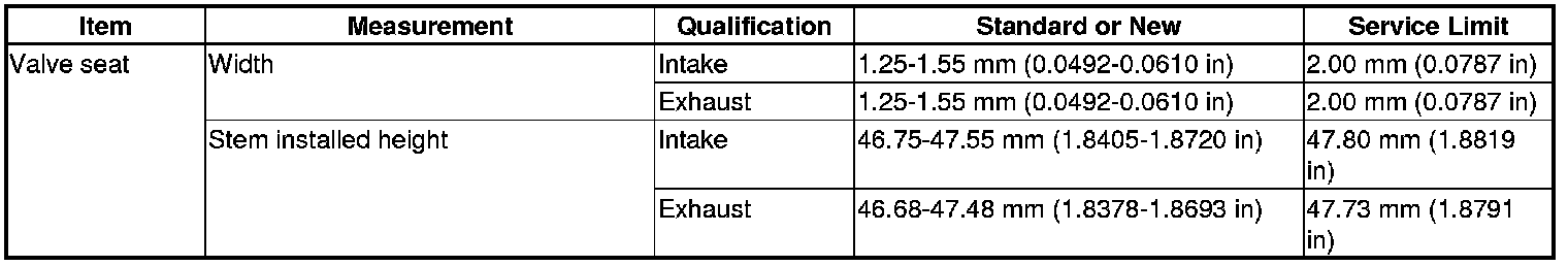Valve Seat Specification(s)