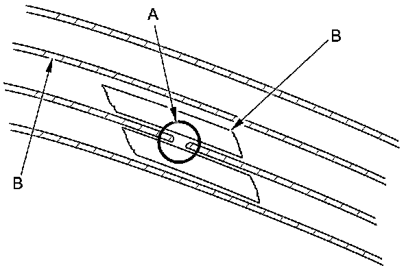 3. Using a small brush, apply a heavy coat of silver conductive paint (commercially available) (A) extending about 1/8'' on both sides of the break. Allow 25 minutes to dry.