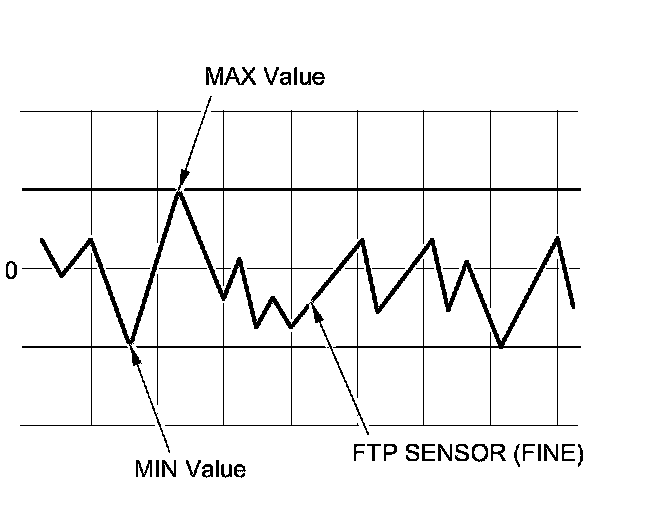 Is the difference between the MAX and MIN values of the FTP SENSOR (FINE) about 0.67 kPa (0.2 inHg, 5 mmHg) or less?