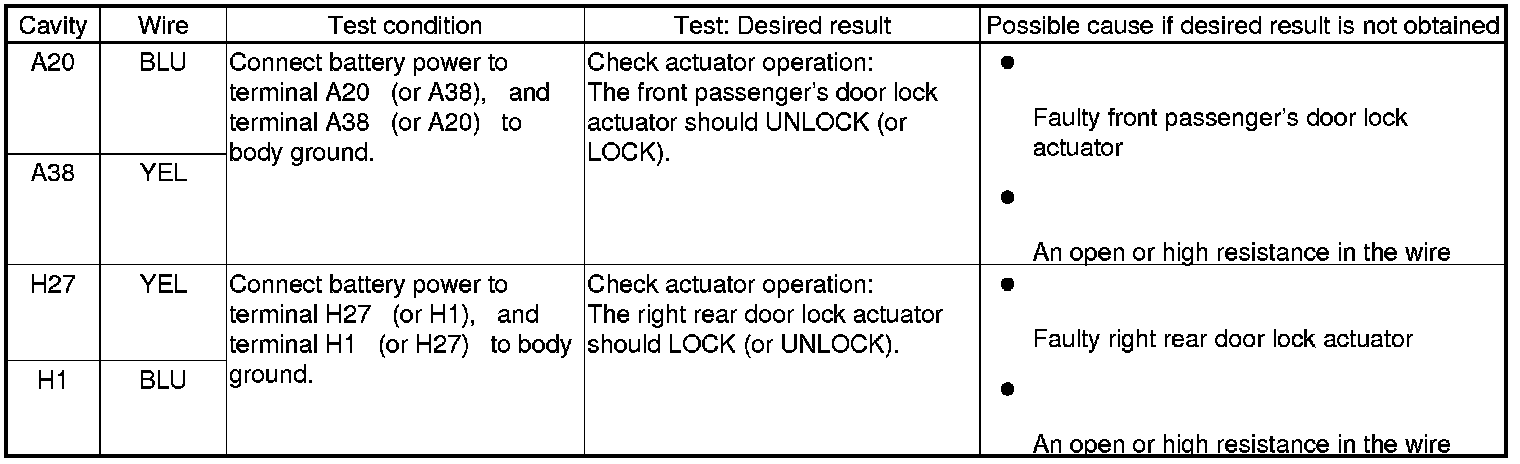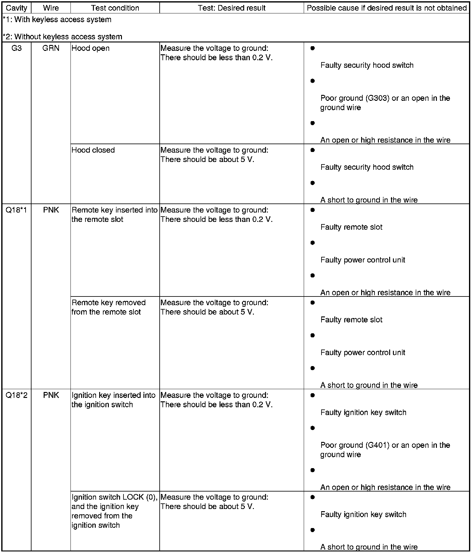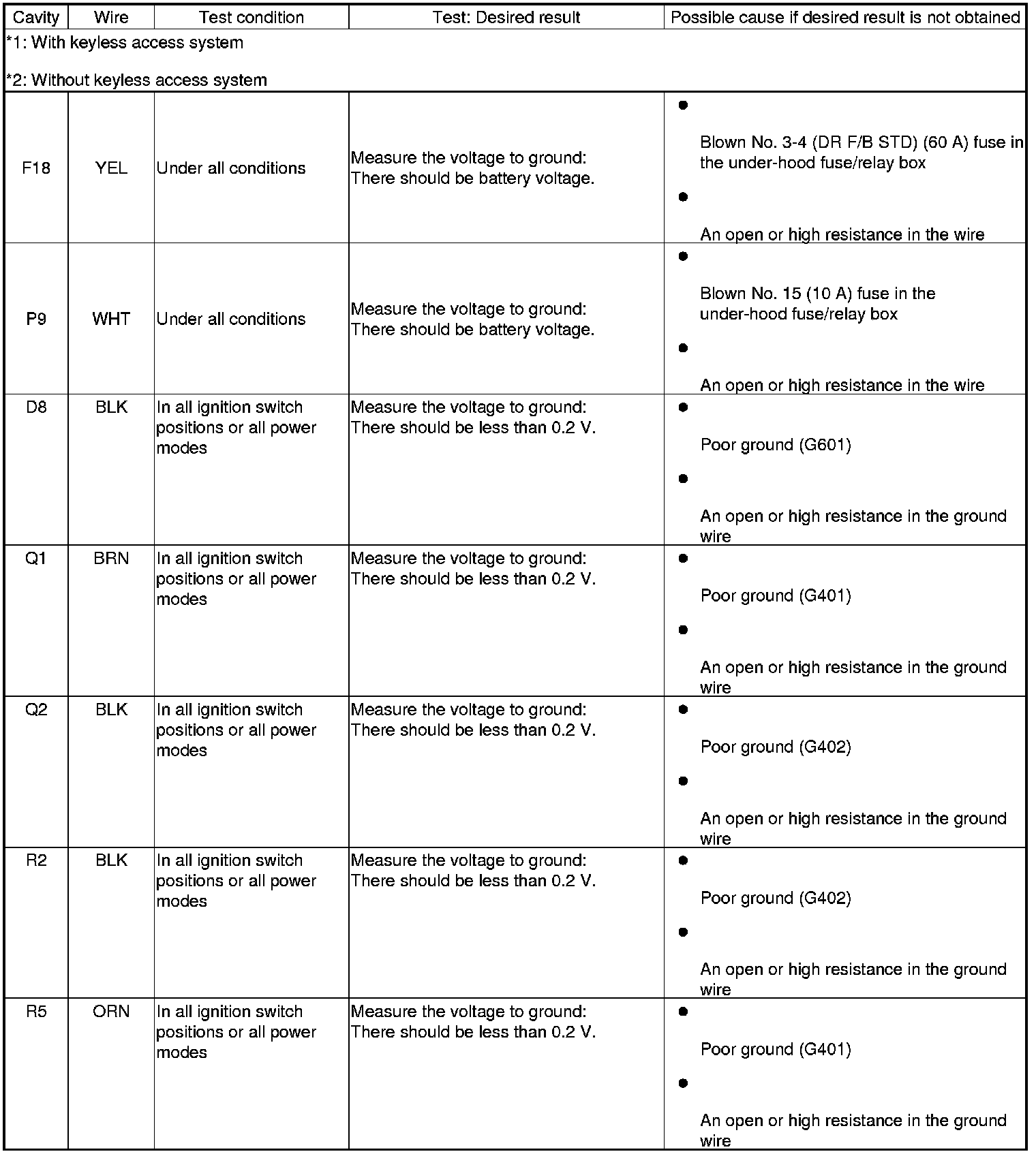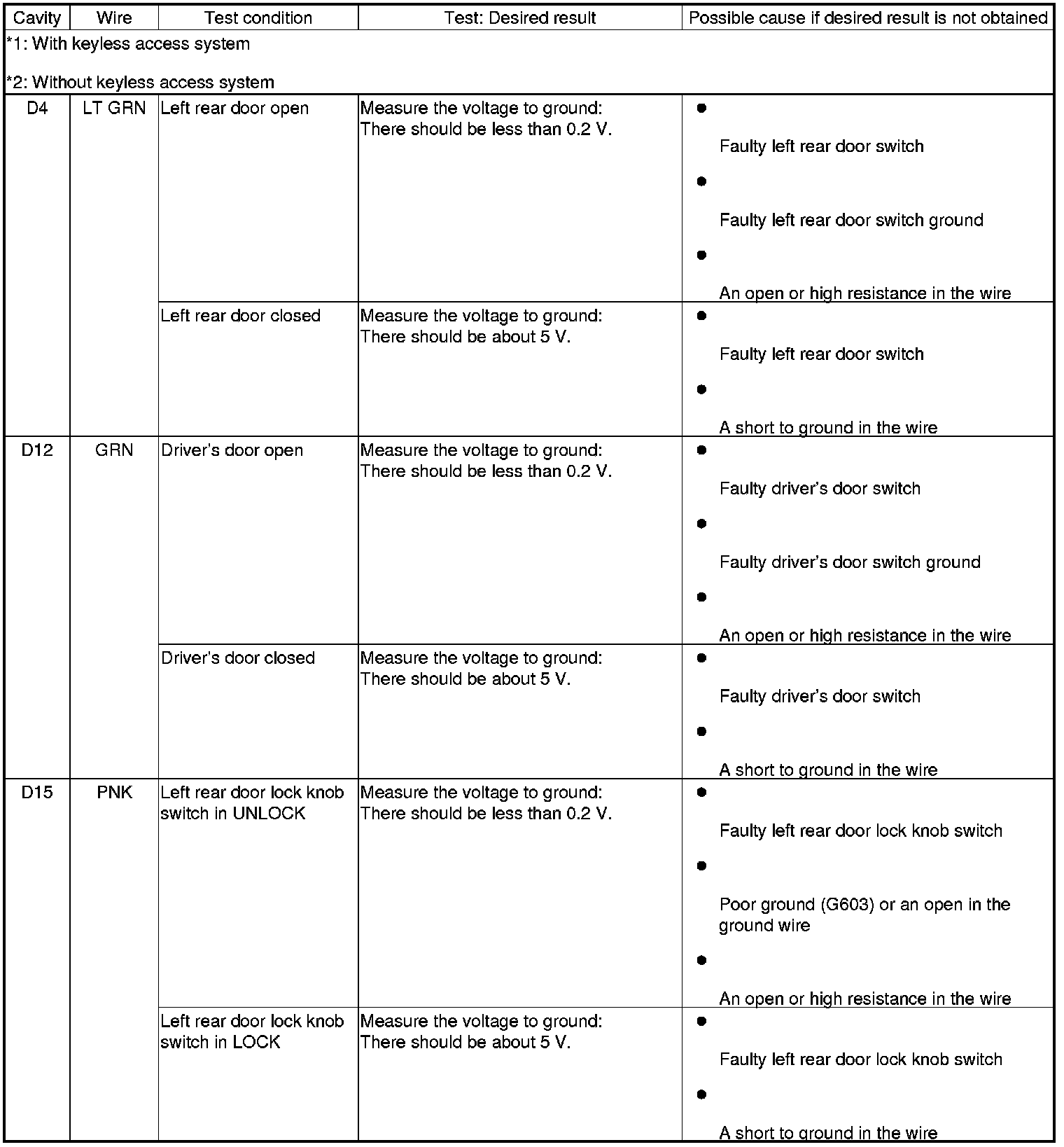 Keyless/Power Door Locks/Security System (Driver's and Passenger's MICU, Door Multiplex Control Unit, and Front Passenger's Power Window Switch) Input Test