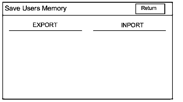 When replacing the audio-navigation unit, this function allows the technician to transfer the client's personal data to the new audio-navigation unit. The transferred information includes their setup settings and personal addresses. The Save Users memory cannot copy music or photographs that are saved on the old HDD. The dealer inserts a USB device into the USB port, and then selects the Save Users Memory function. The two functions in this diagnostic screen are EXPORT and IMPORT. EXPORT saves the client's data to the USB device, and IMPORT moves the USB device files to the new audio-navigation unit.