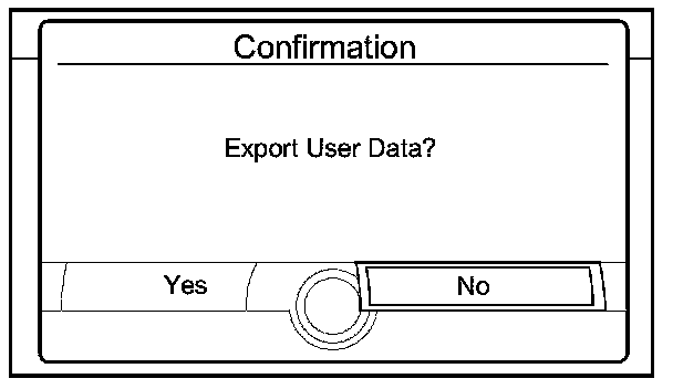 1. Select EXPORT button to move the client's data from the original audio-navigation unit to the USB device. Select YES on the Export User Data Confirmation screen. The process takes only a couple of seconds. The system stores .DAT files on the USB device.