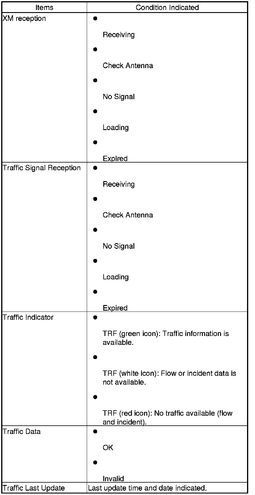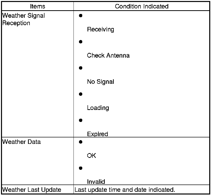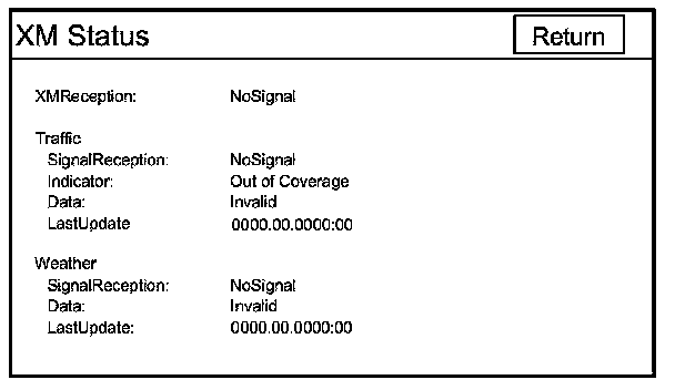 You can check the XM status in this screen. For problems with XM signal reception, refer to the audio section.