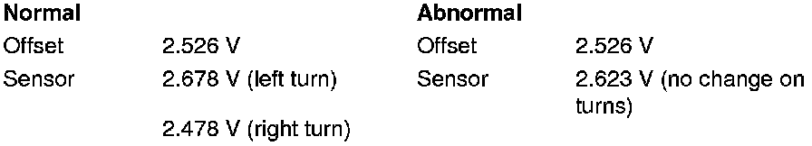 - A sensor output voltage LOWER than the Offset voltage indicates that the vehicle is turning to the right.