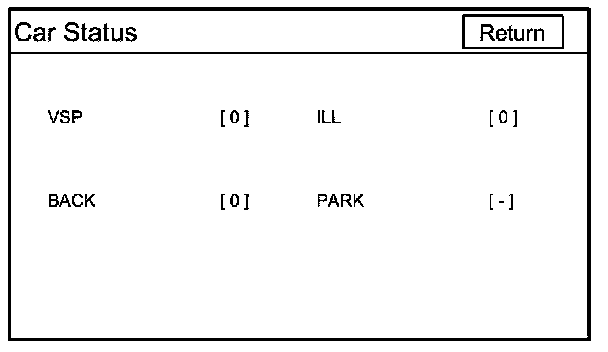 Use this screen to confirm that the audio-navigation unit is properly receiving input signals. Signals equal to (0) are OFF, and signals equal to (1) are ON. If the value on the display does not match the actual vehicle status, then check the wire carrying the signal.
