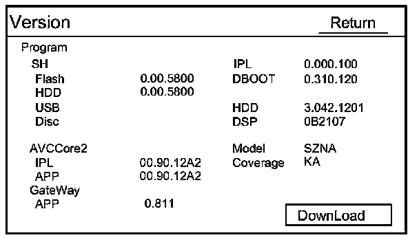 - HDD: Displays the version of the navigation software in the navigation HDD.