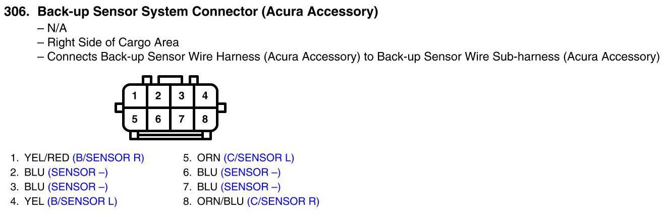 View 306 - Back-Up Sensor System Connector Connector View (Acura Accessory)