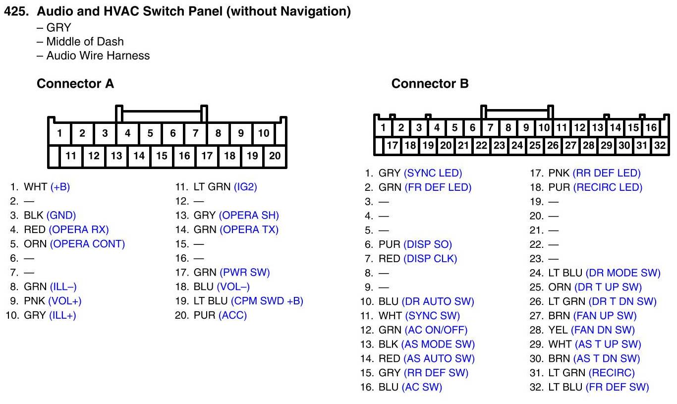 Audio and HVAC Switch Panel Connector View (Without Navigation)