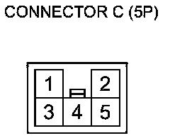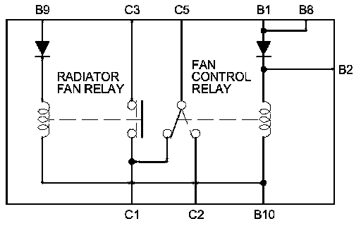 There should be continuity between terminals C2 and C5 when battery power is connected to terminal B1 (, B2, or B8), and body ground is connected to terminal B10. There should be no continuity between terminals C2 and C5 when power is disconnected.