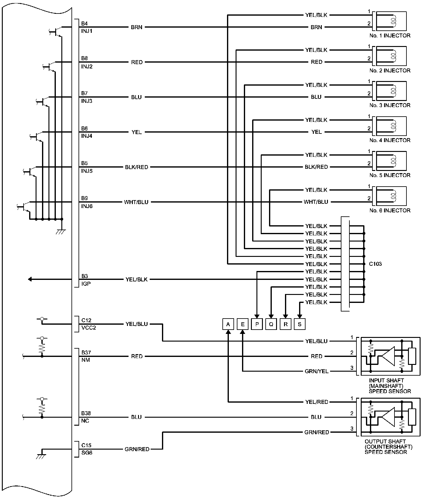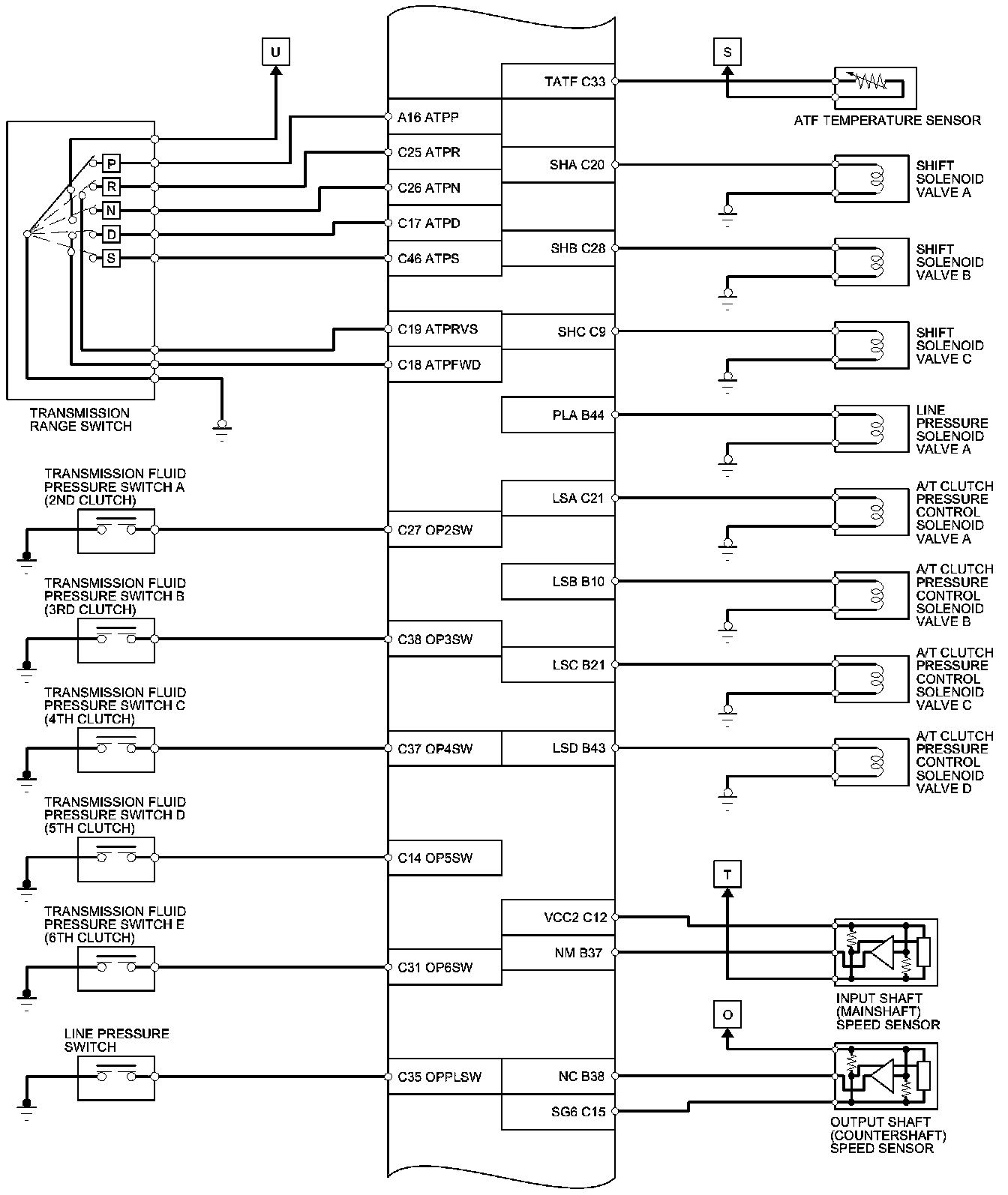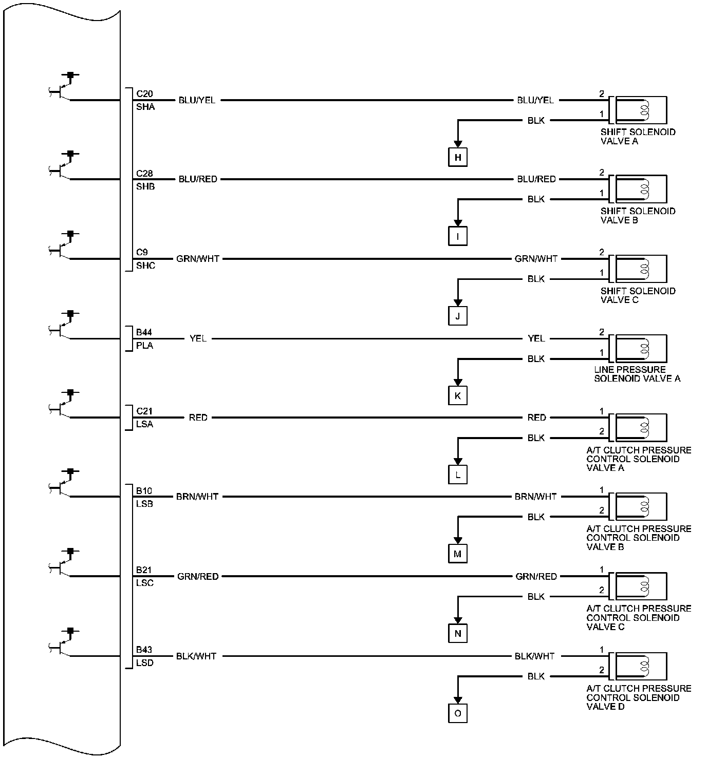 PCM Inputs and Outputs at PCM Connector A (square) (49P)