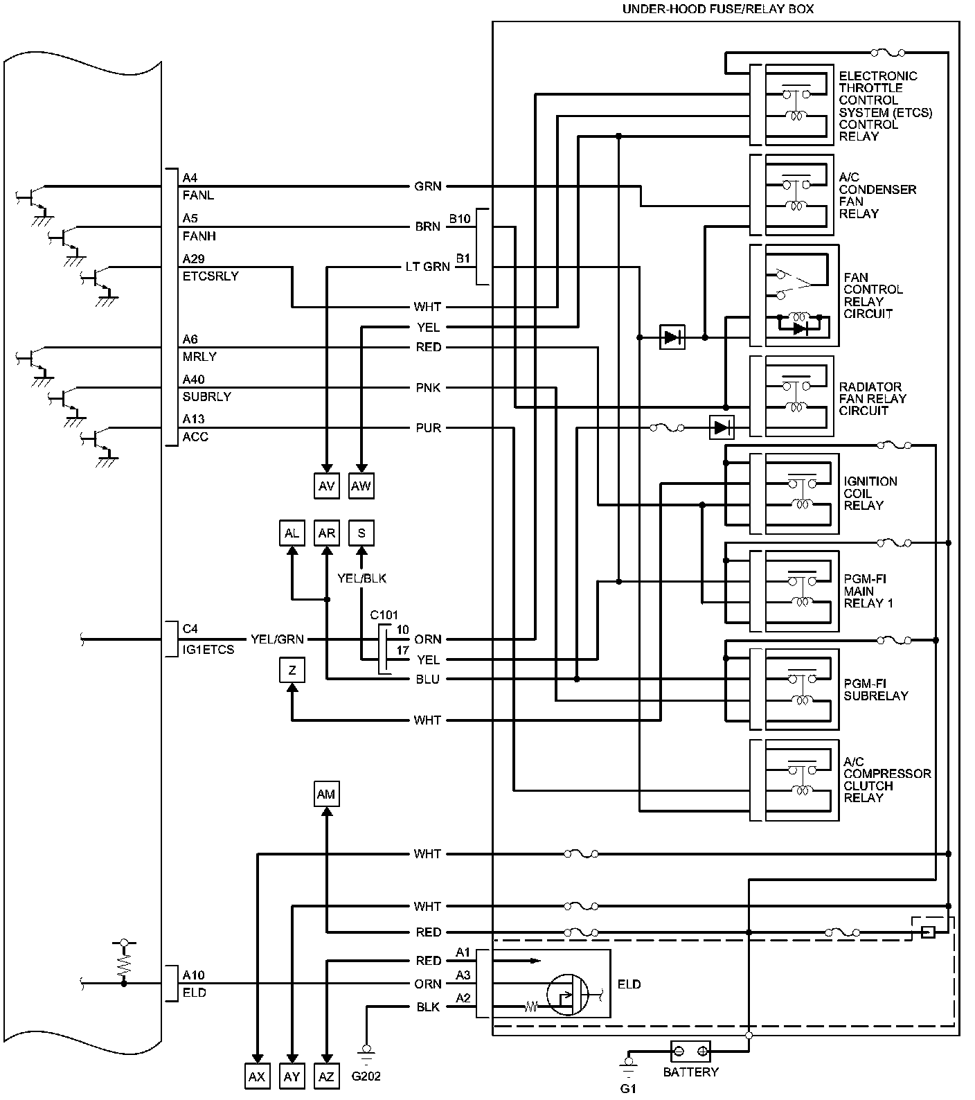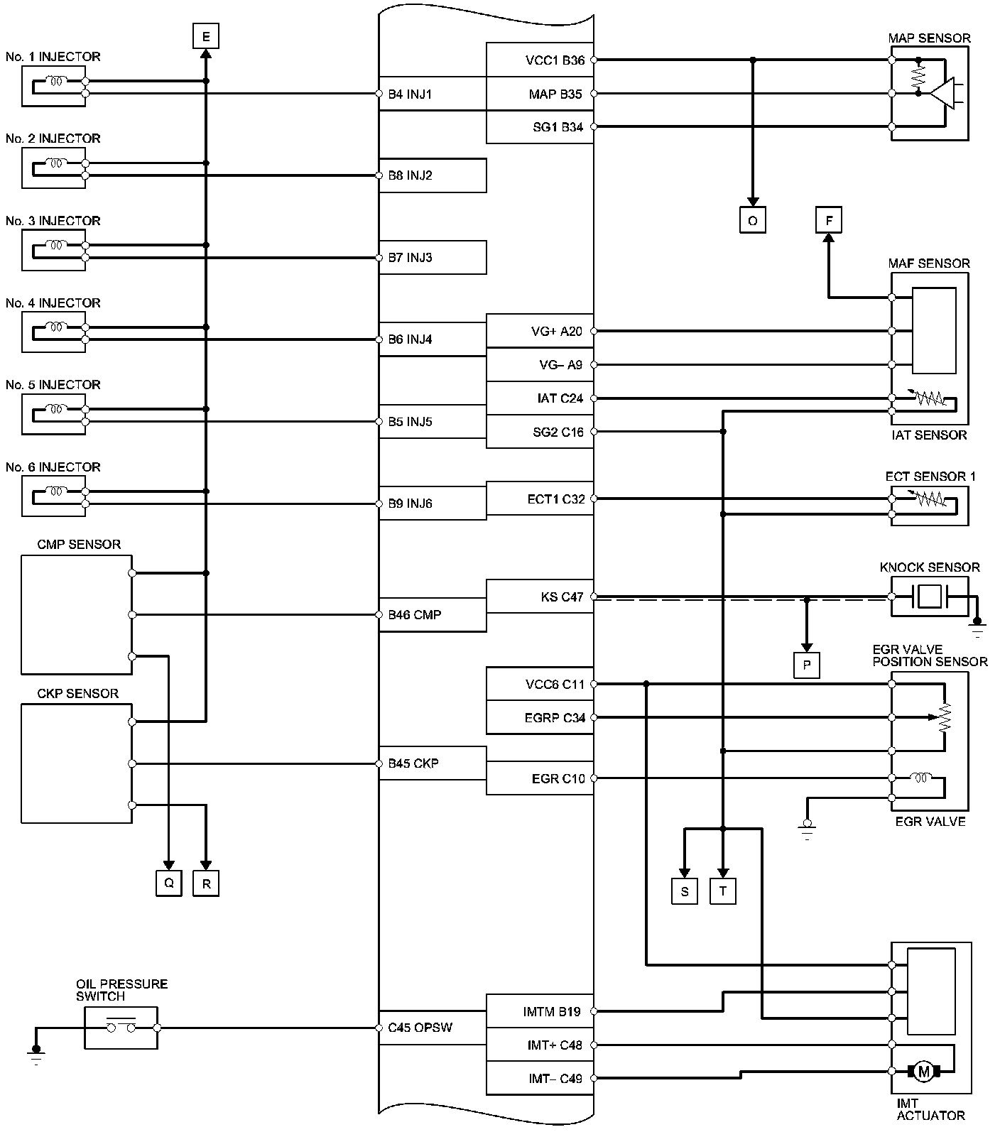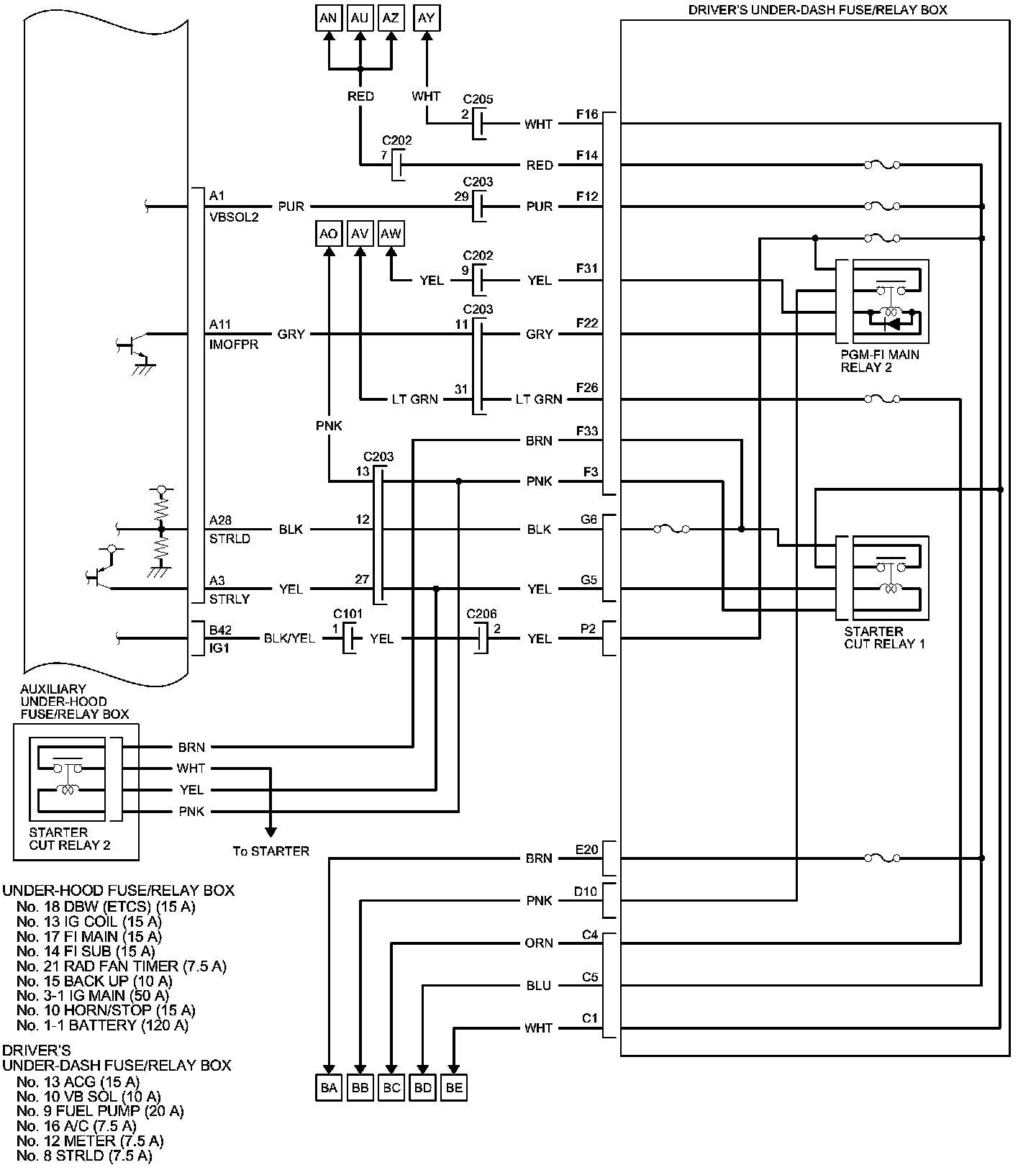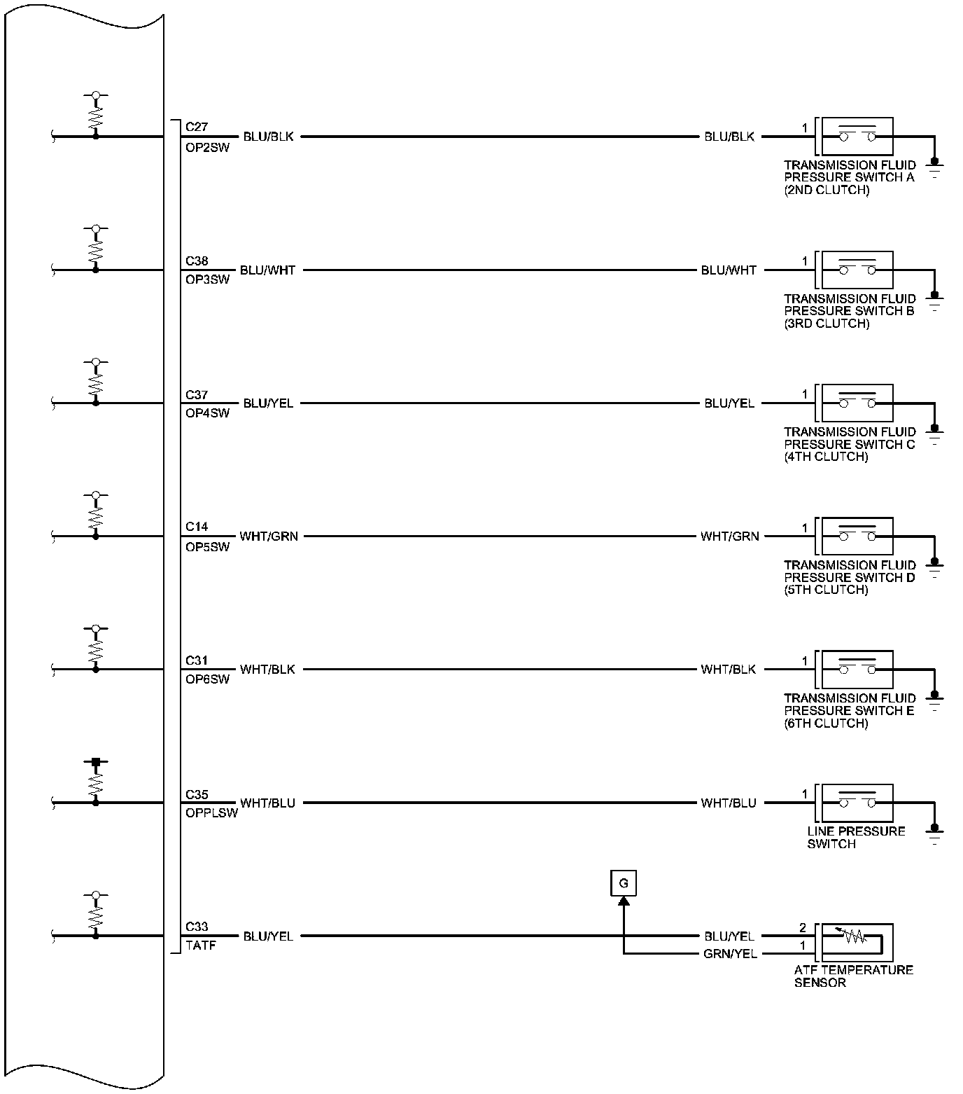PCM Inputs and Outputs at PCM Connector A (square) (49P)