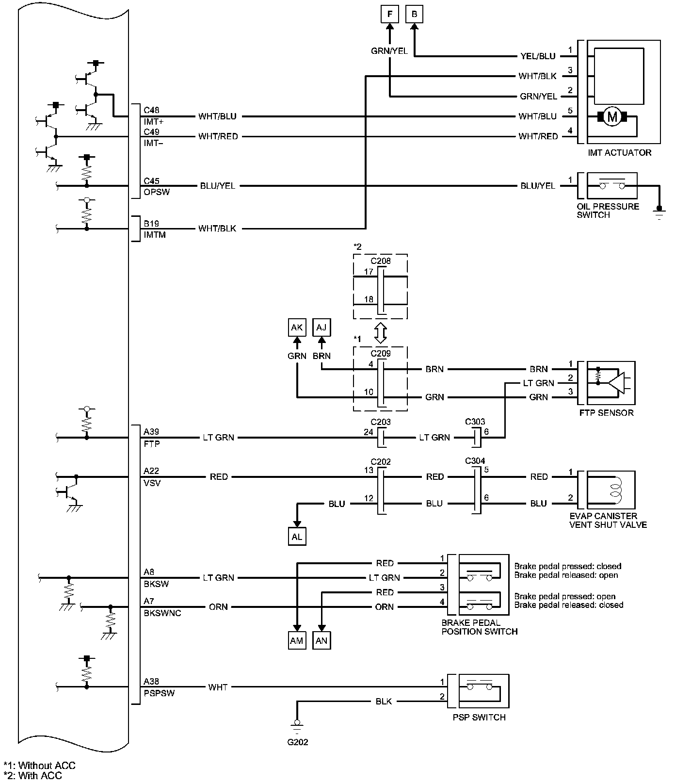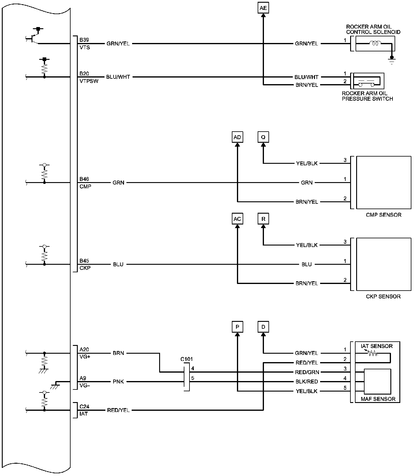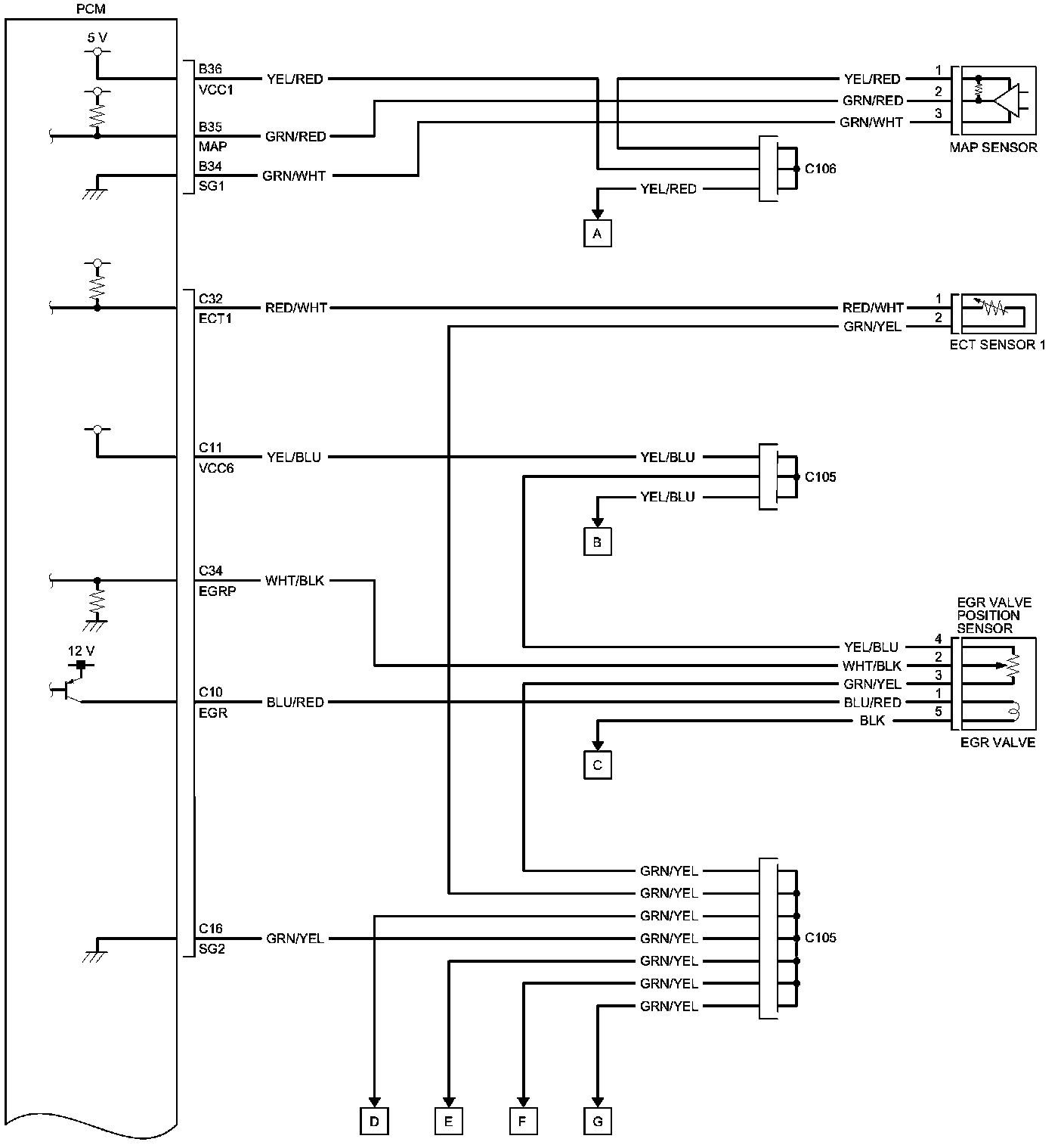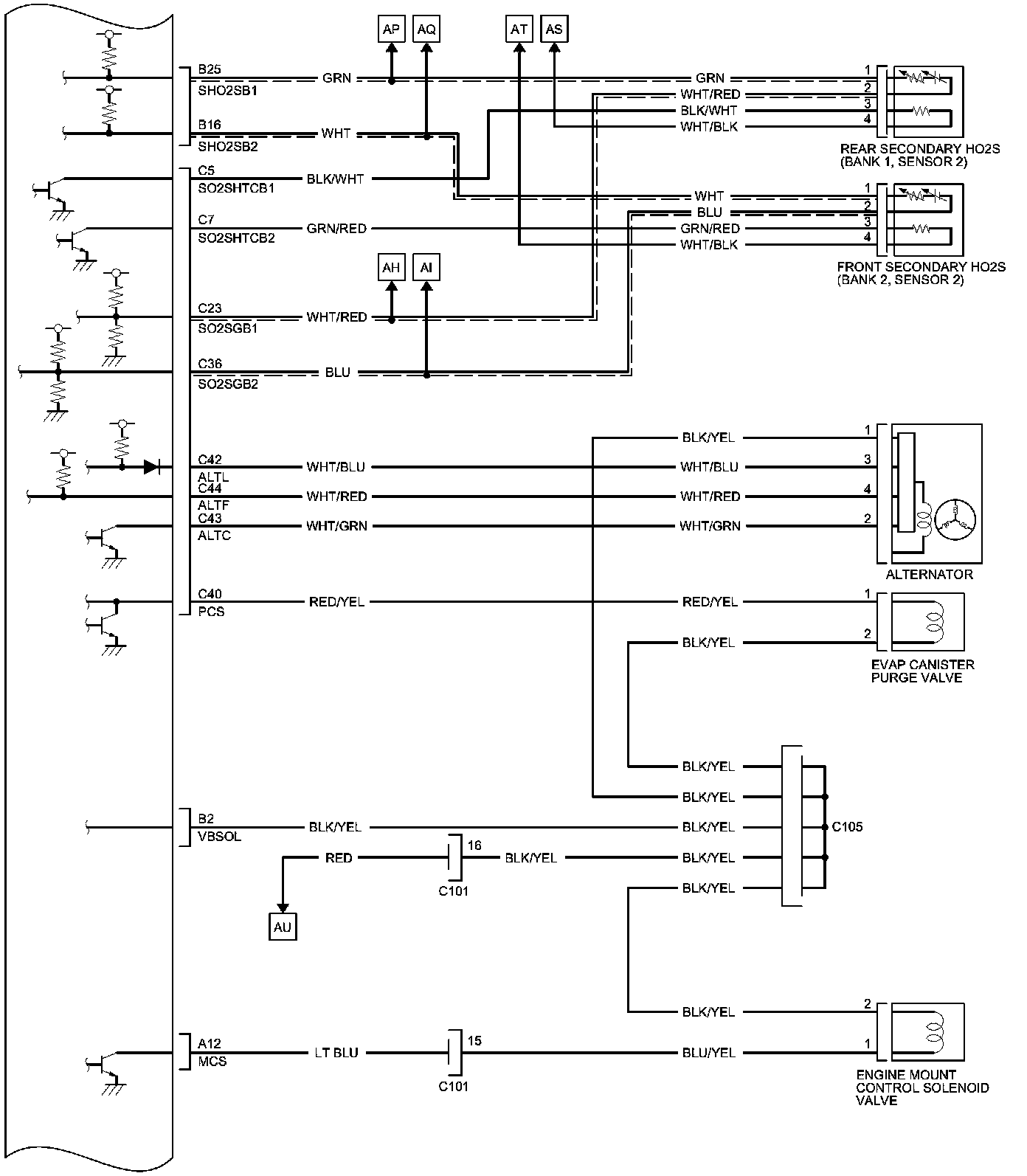 PCM Inputs and Outputs at PCM Connector C (circle) (49P)