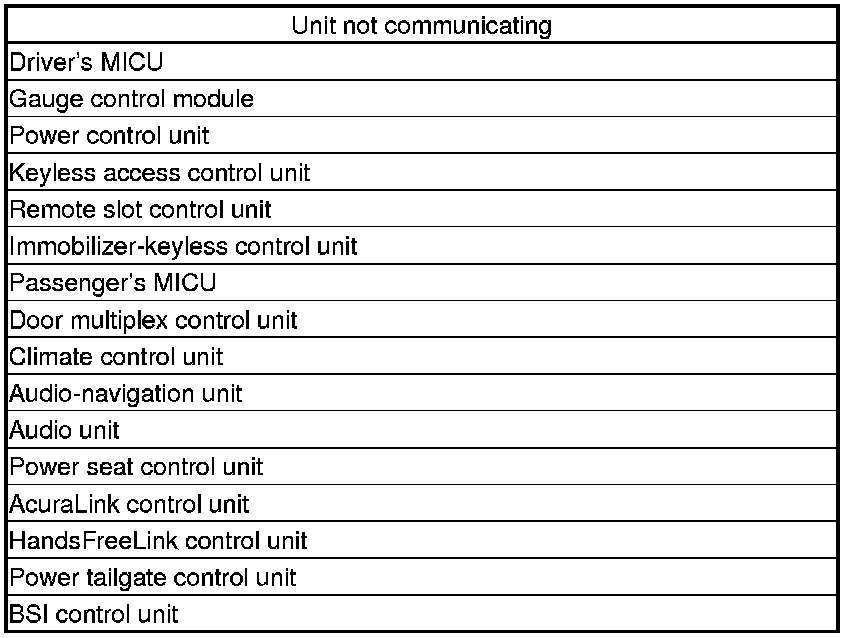 Do this diagnosis if any of the control units are not communicating (NOT AVAILABLE is displayed in the HDS) as found by the B-CAN System Diagnosis Test Mode A Troubleshooting - B-CAN System Diagnosis Test Mode A.