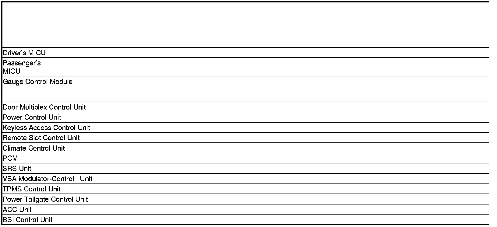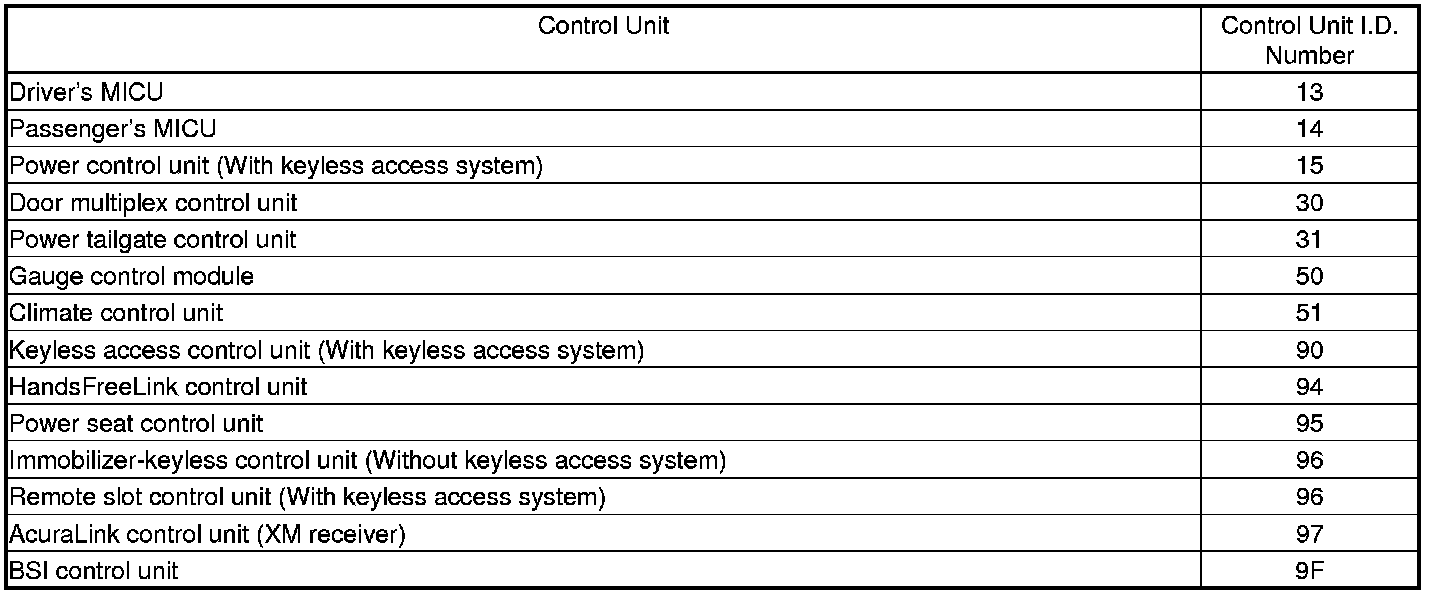 When an ECU on the CAN circuit is unable to communicate with the other ECUs on the B-CAN and F-CAN circuits, the other control units will set loss of communication DTCs. Use this chart to find the control unit that is not communicating with the other control units on the CAN circuits.