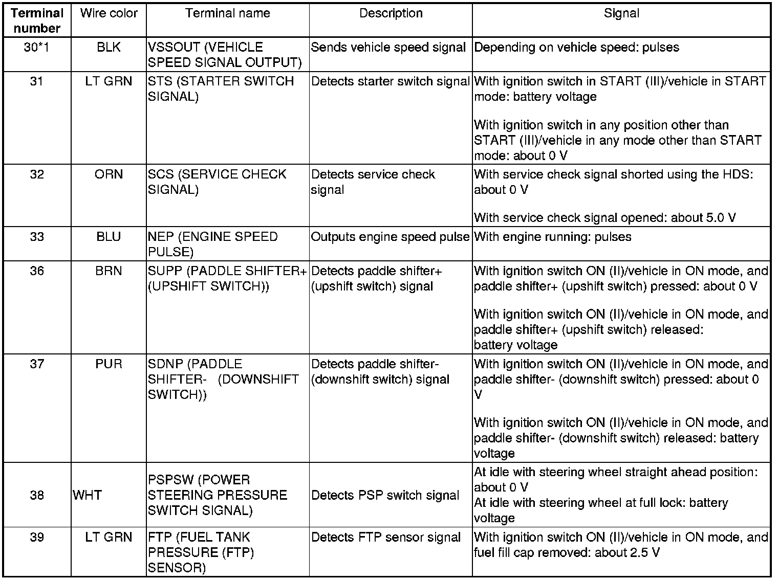 Pinout Values and Diagnostic Parameters