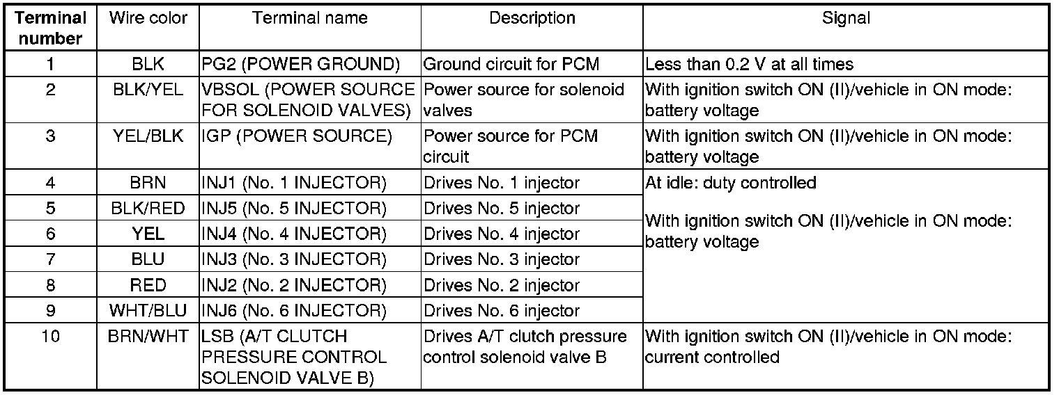 PCM Inputs and Outputs at PCM Connector A (square) (49P)