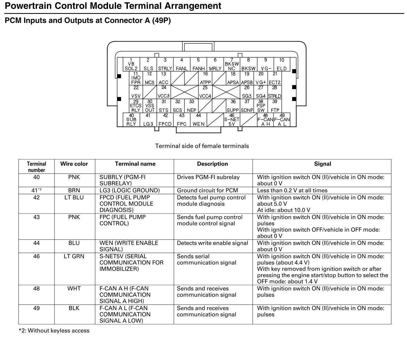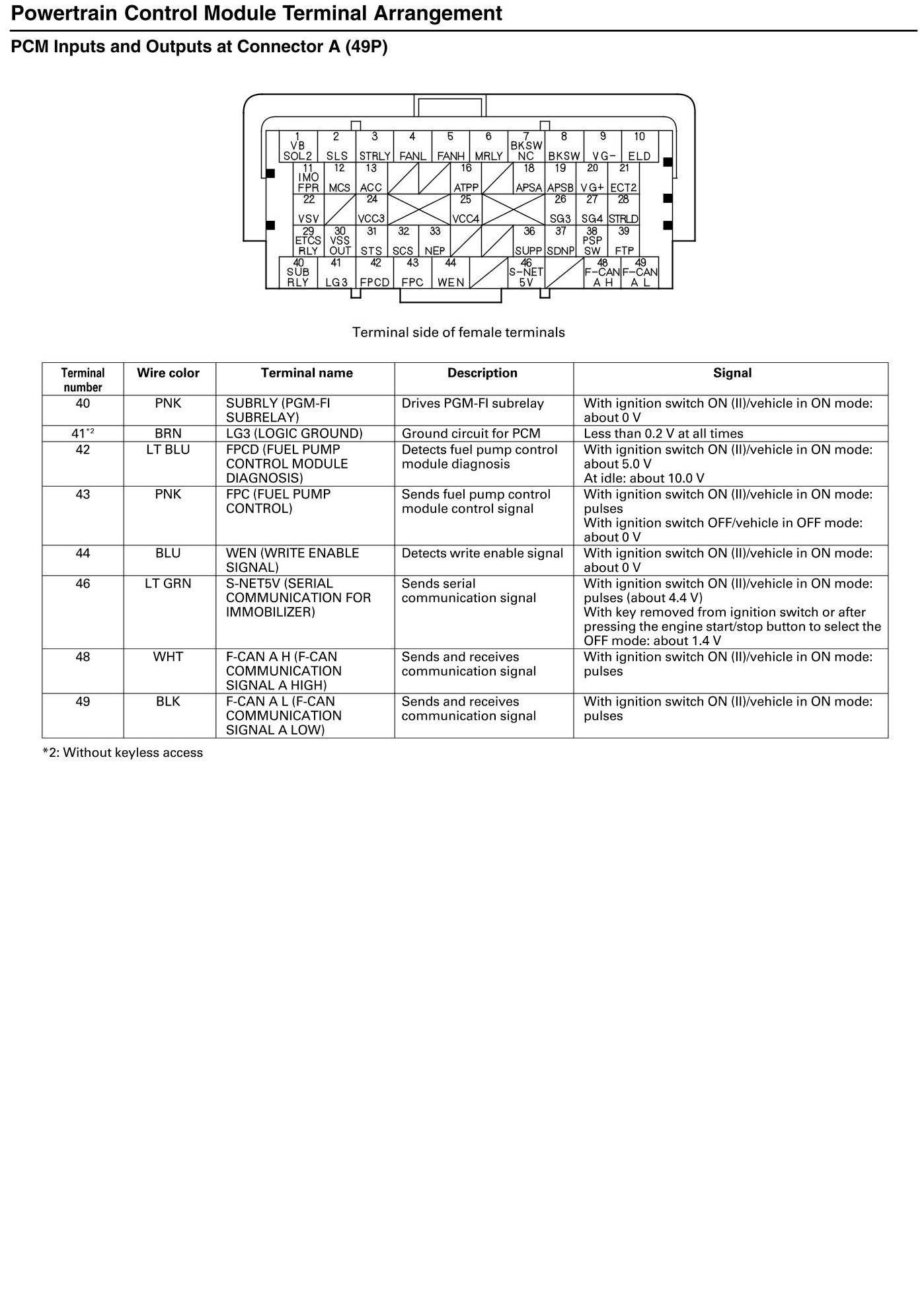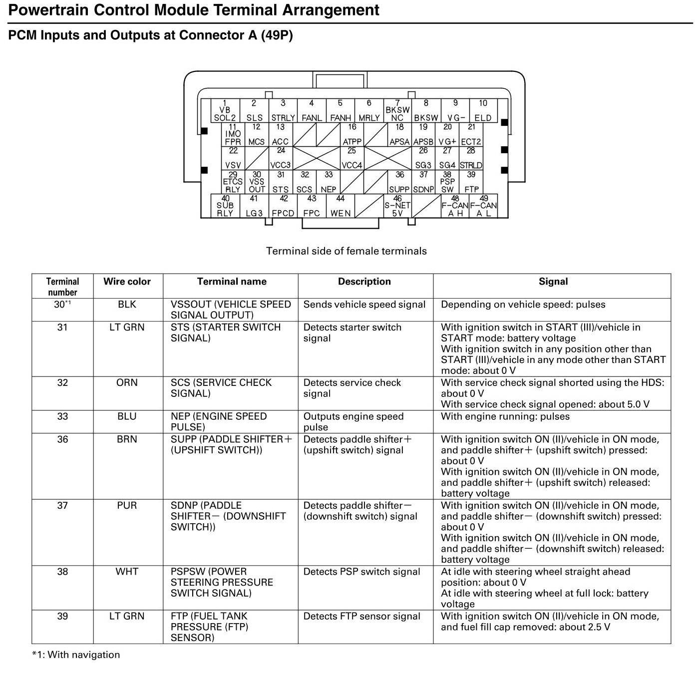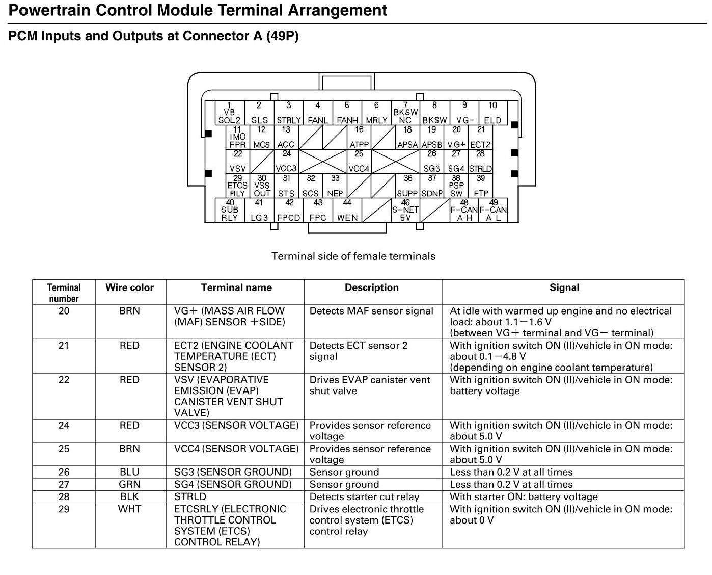 PCM Inputs and Outputs at Connector A