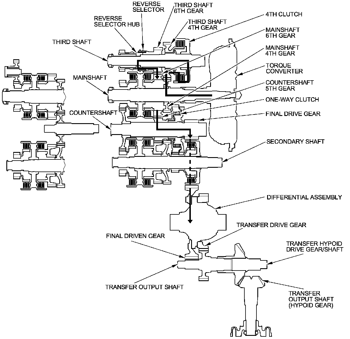 - Hydraulic pressure is applied to the 6th clutch, then the 6th clutch engages the mainshaft 6th gear with the mainshaft.
