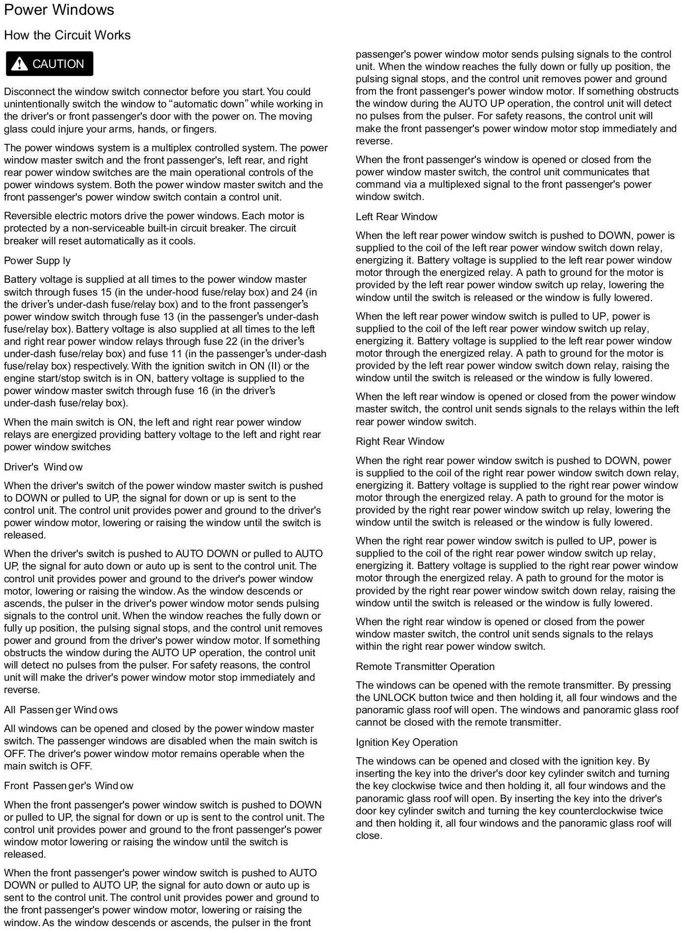 How the Power Windows Circuit Works