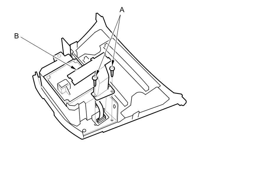 2. Remove the screws (A) and harness cover (B).