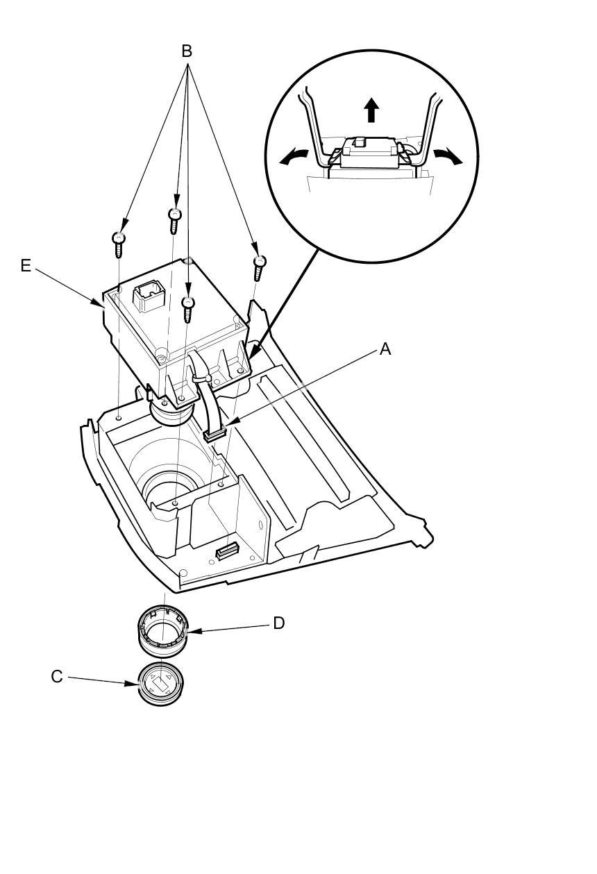 4. Remove the screws (B), then remove the knob (C) and the dial (D) from the interface dial (E) with two KTC trim tools and applying even force as shown.