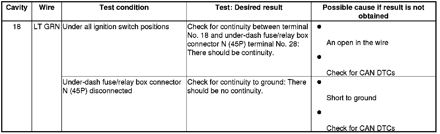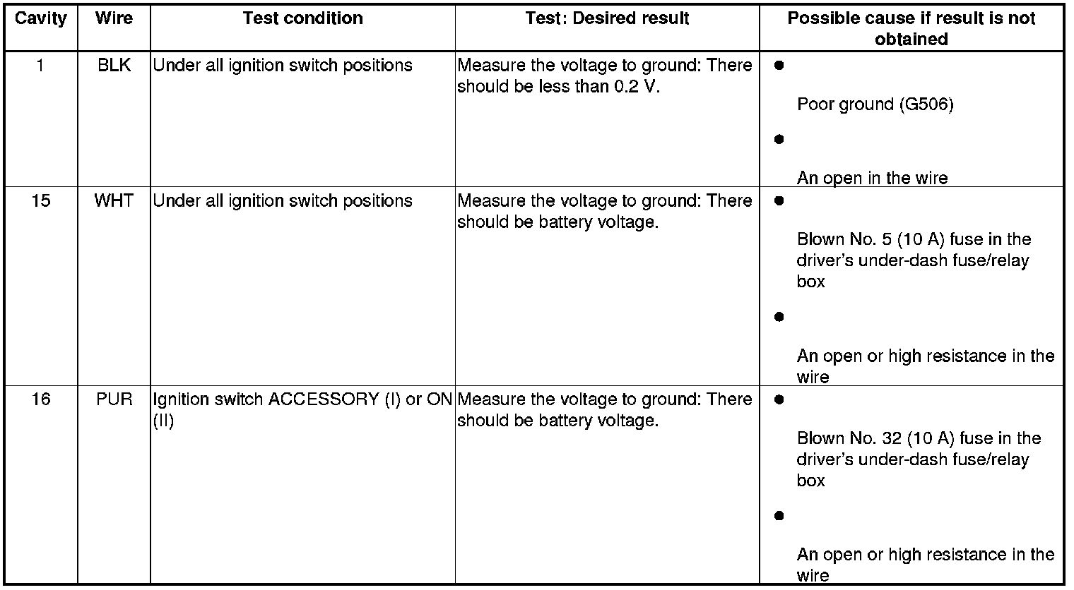 3. Reconnect the connector, and make these input tests at the connector.