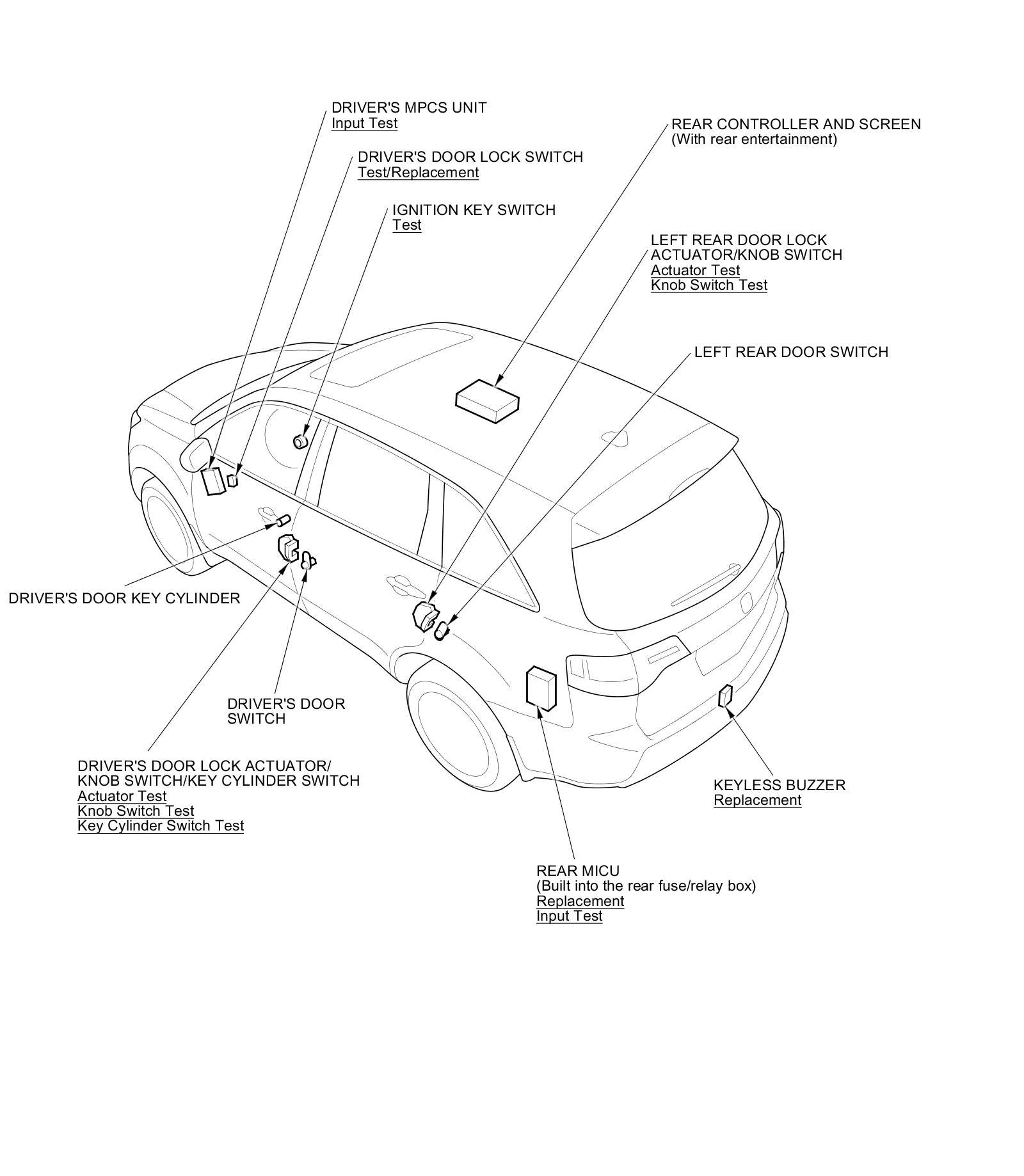 Keyless/Power Door Locks/Security System Component Location Index