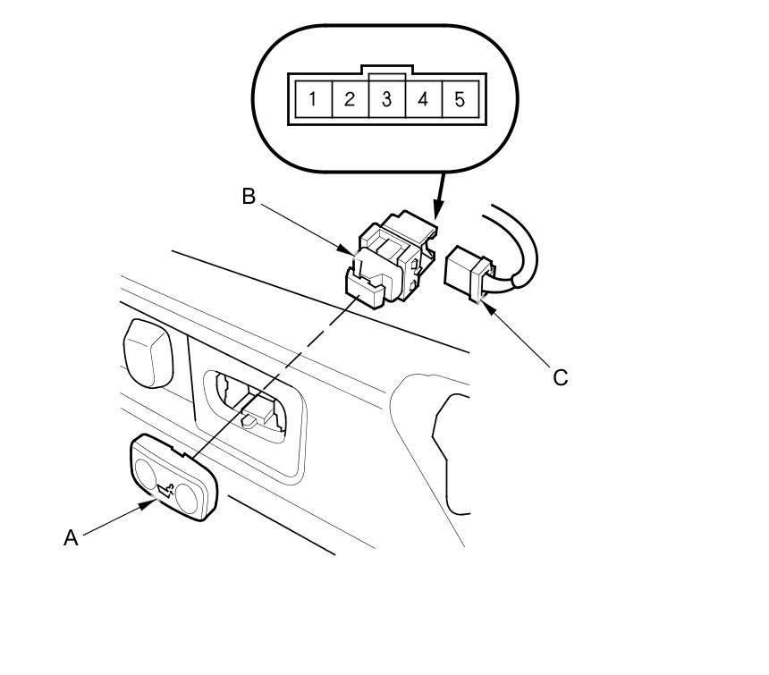 2. Separate the lumbar support switch cover (A) from the switch (B).