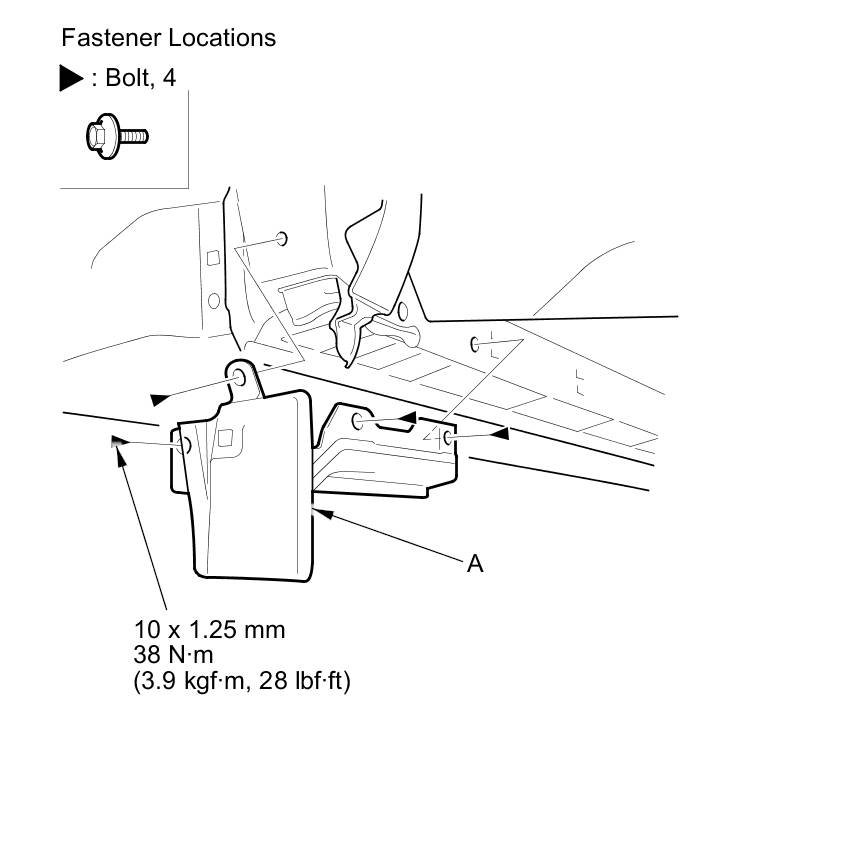 2. Remove the bolts, then remove the left front splash guard reinforcement (A).