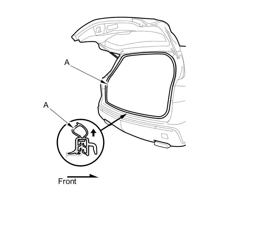 3. Remove the tailgate weatherstrip (A) by pulling it out.