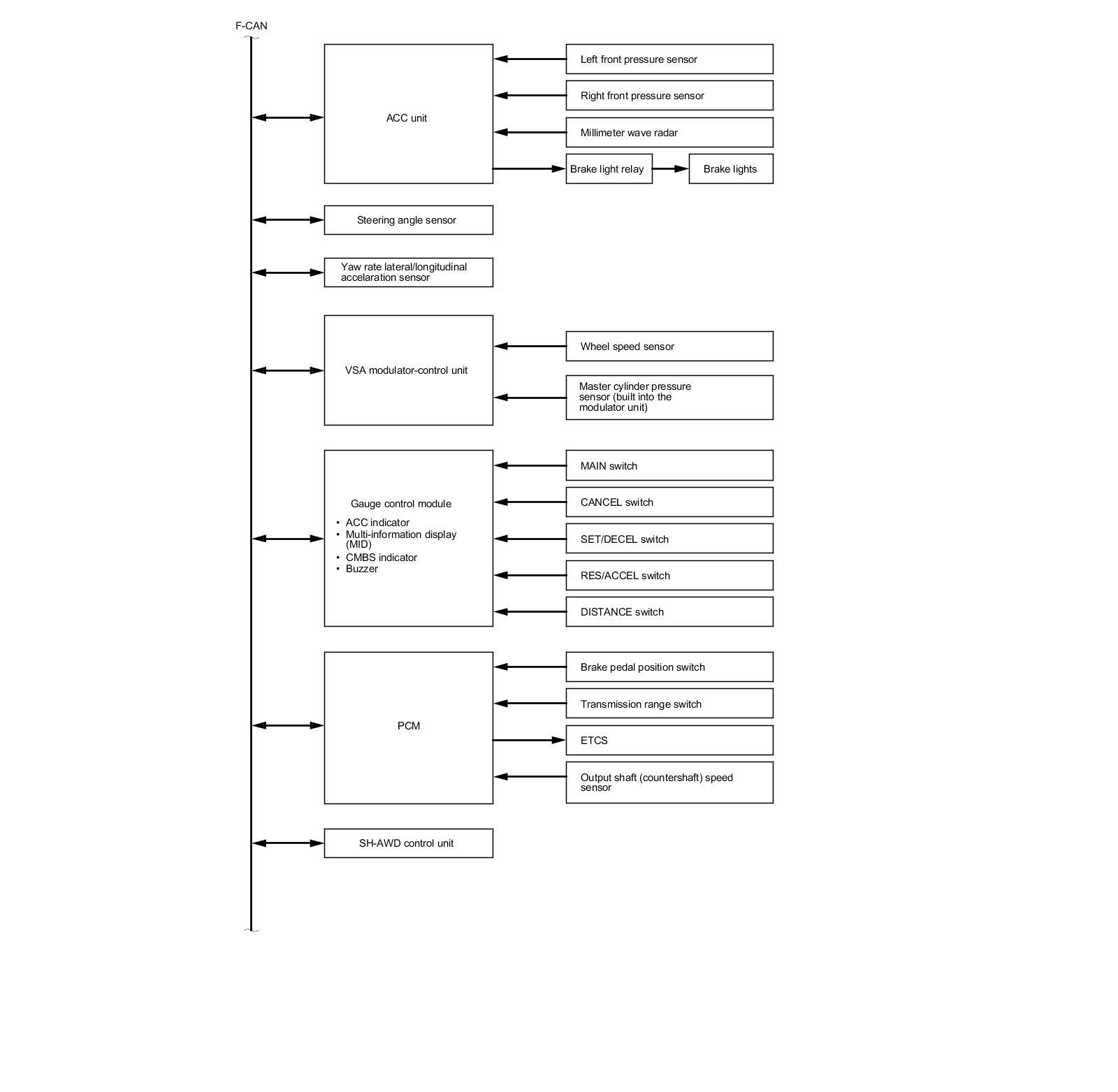 Adaptive Cruise Control (ACC) Unit Inputs and Outputs