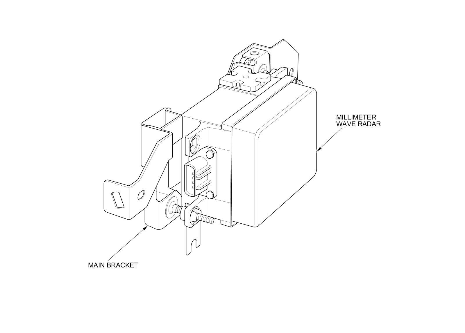 The millimeter wave radar is installed on the main bracket attached to the front bulkhead. The main bracket allows the radar angle to be adjusted ±3 degrees vertically by moving the main bracket adjusters.