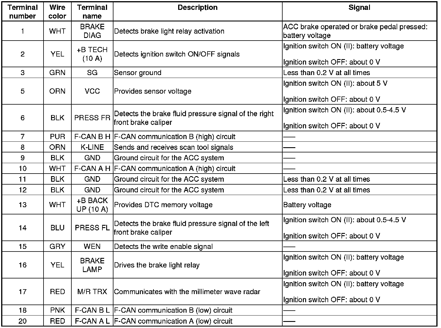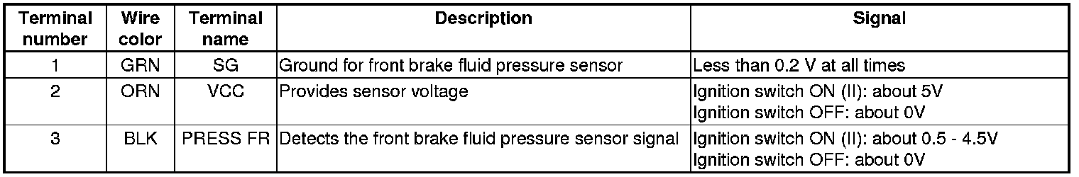Front Brake Fluid Pressure Sensor Inputs and Outputs