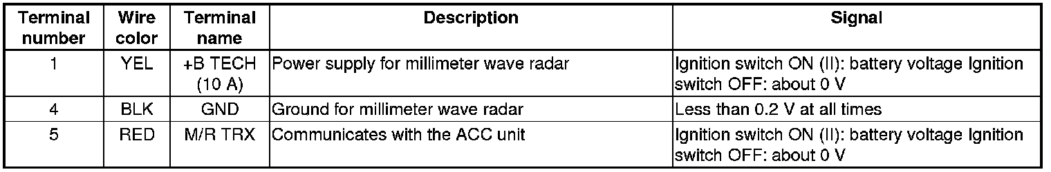 The millimeter wave radar has a self-diagnostic function; it sends this information to the ACC unit.
