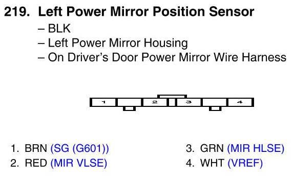 View 219 - Left Power Mirror Position Sensor Connector View