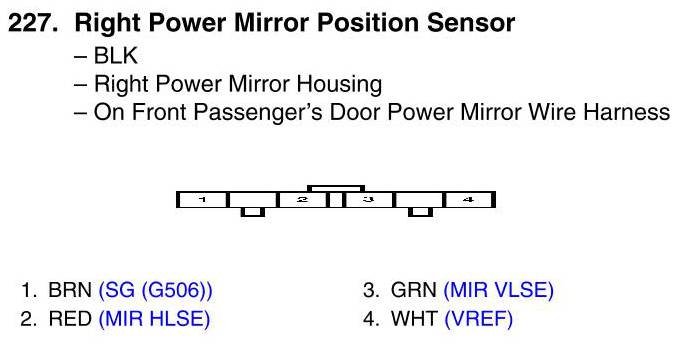 View 227 - Right Power Mirror Position Sensor Connector View