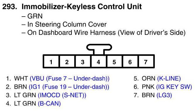 View 293 - Immobilizer-Keyless Control Unit Connector View