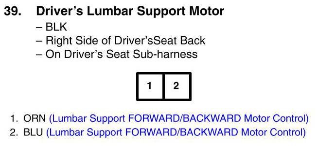 View 39 - Driver's Lumbar Support Motor Connector View