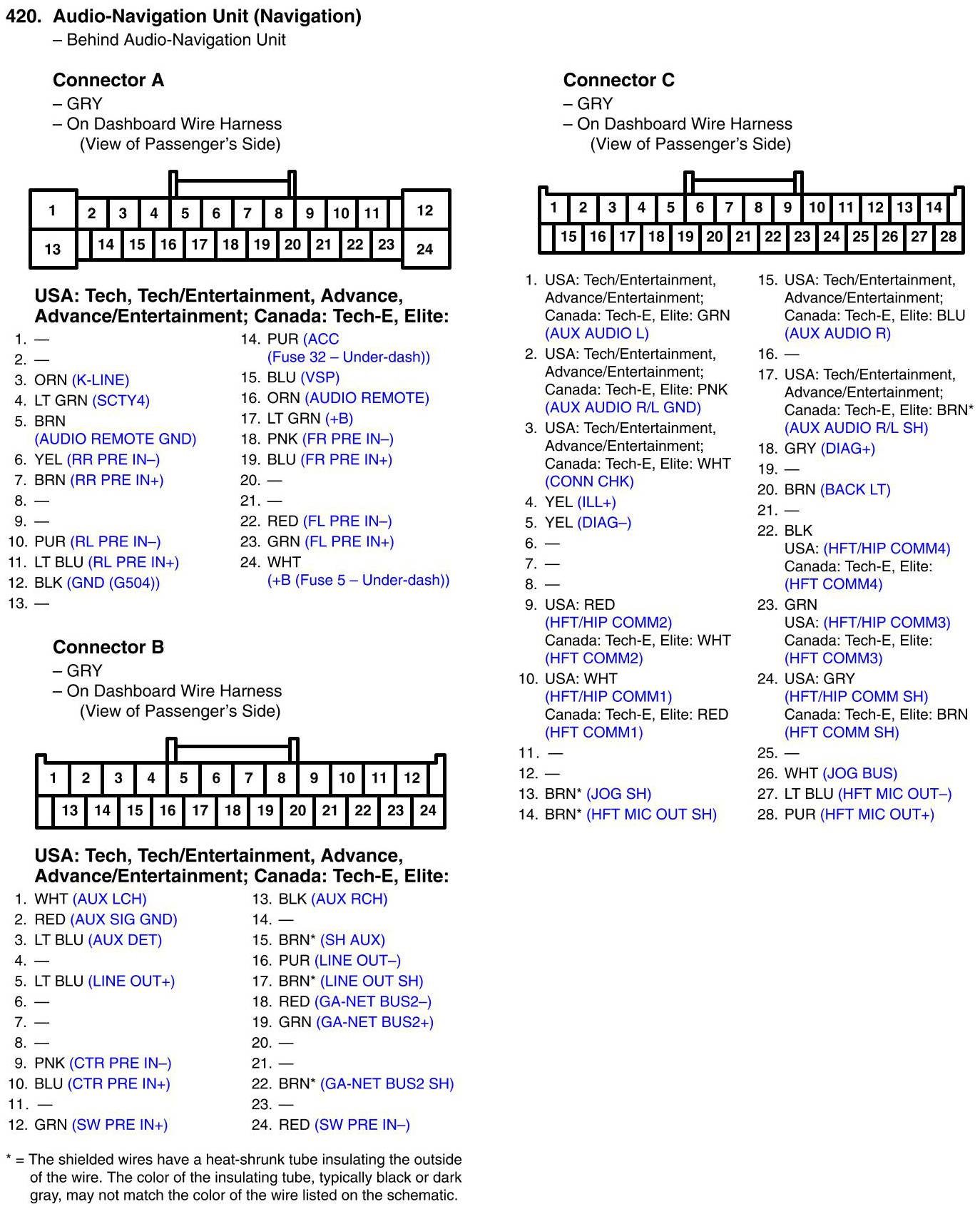View 420 - Audio-Navigation Unit Connector View (Navigation)