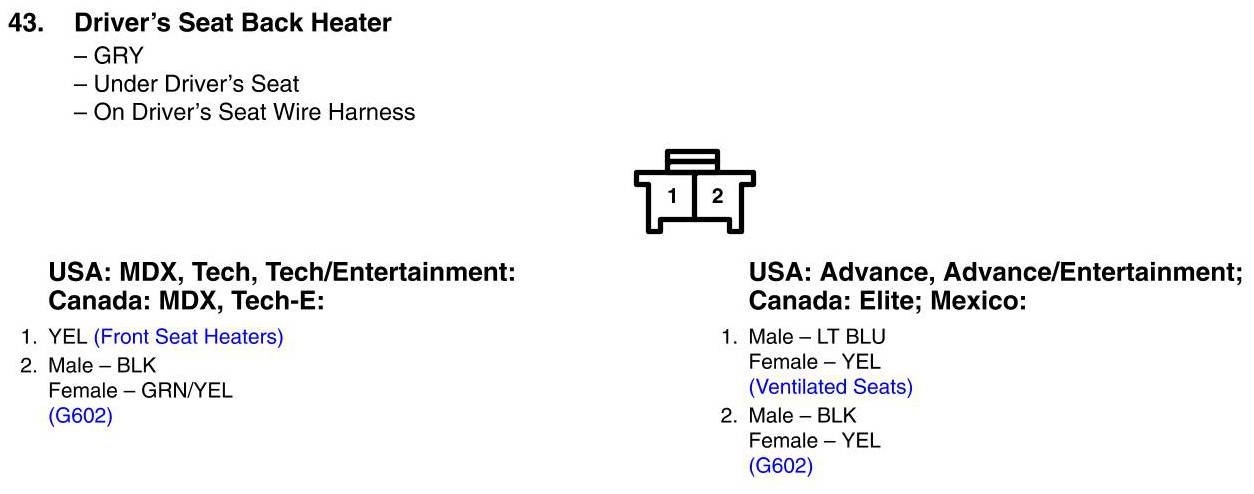 View 43 - Driver's Seat Back Heater Connector View
