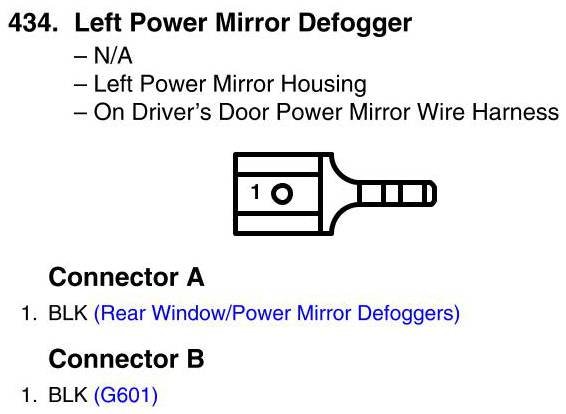 View 434 - Left Power Mirror Defogger Connector View