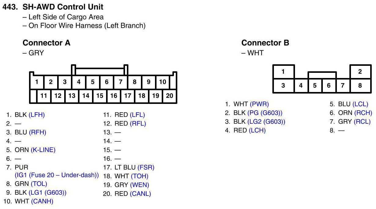View 443 - SH-AWD Control Unit Connector View